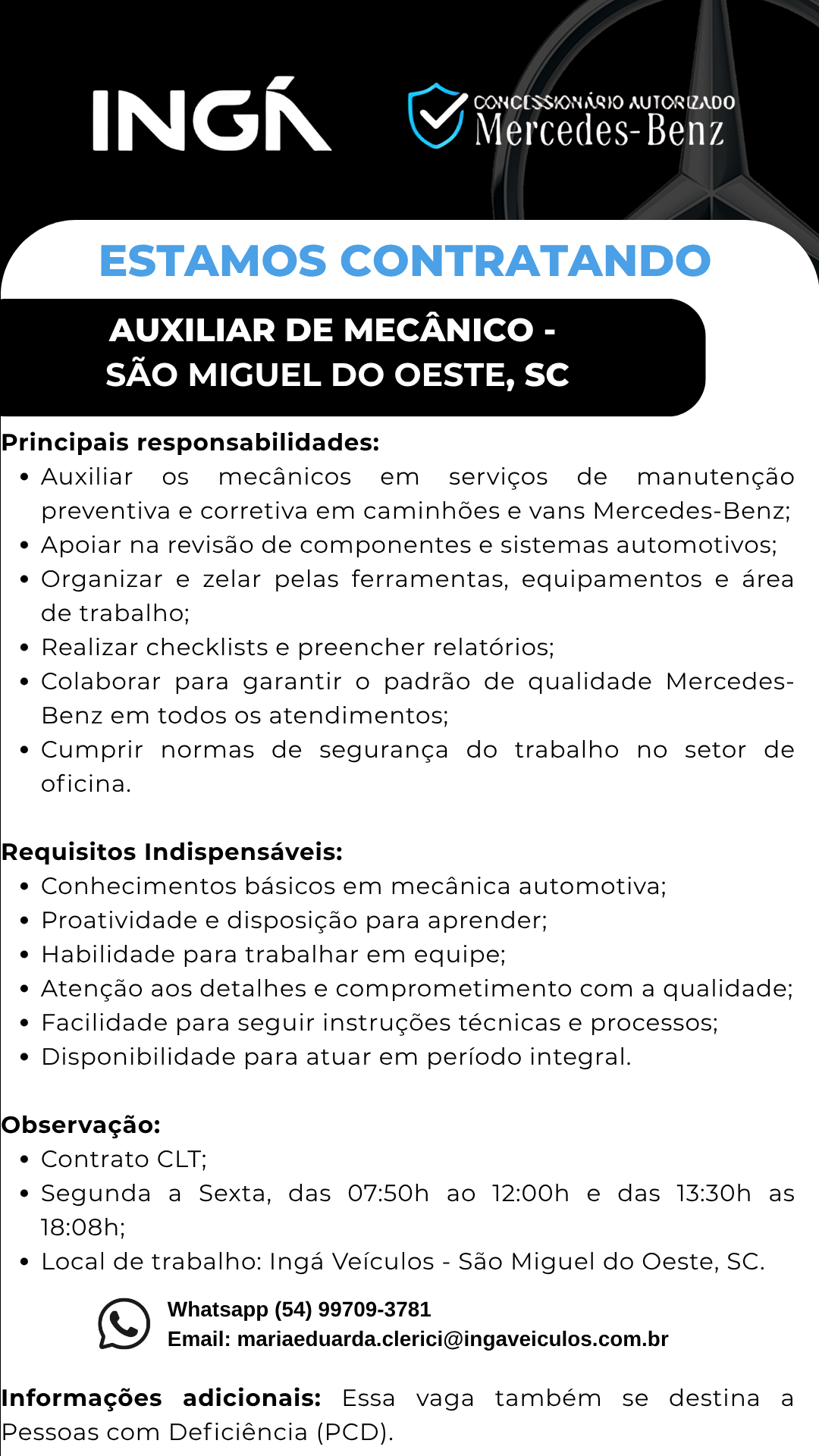 Auxiliar de Mecânico - Concessionário Mercedes Benz - São Miguel do Oeste/SC