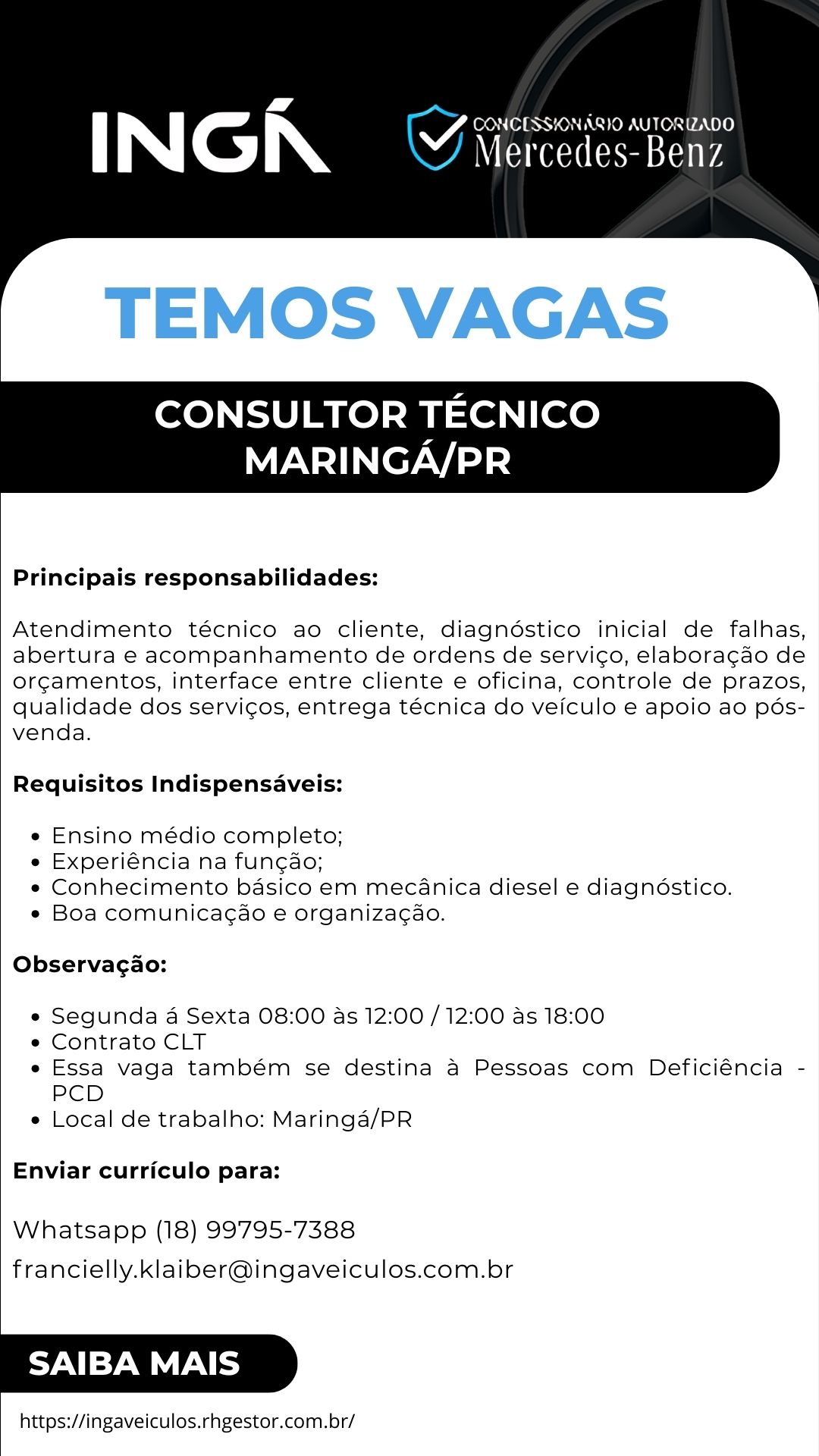 Consultor Técnico - Concessionário Mercedes Benz - Maringá/PR