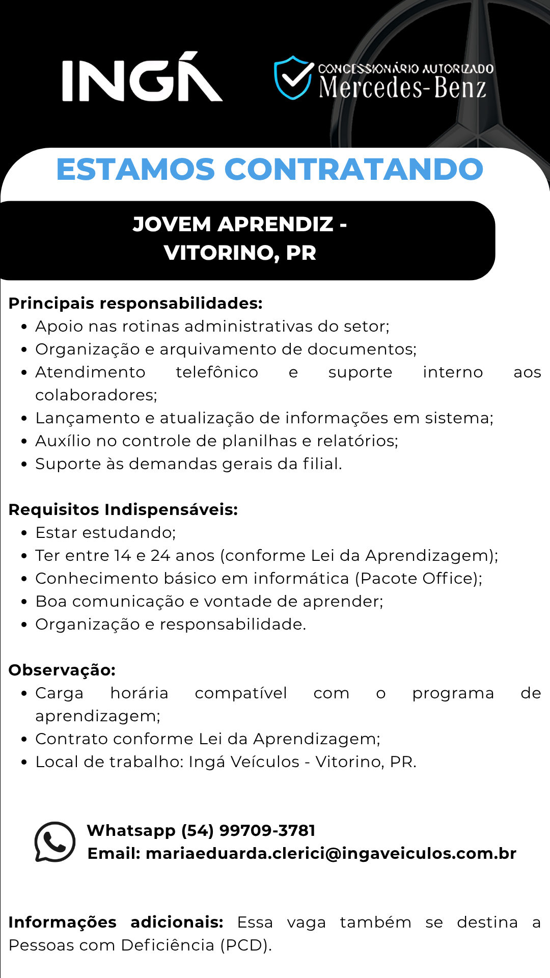 Jovem Aprendiz - Concessionário Mercedes Benz - Vitorino, PR
