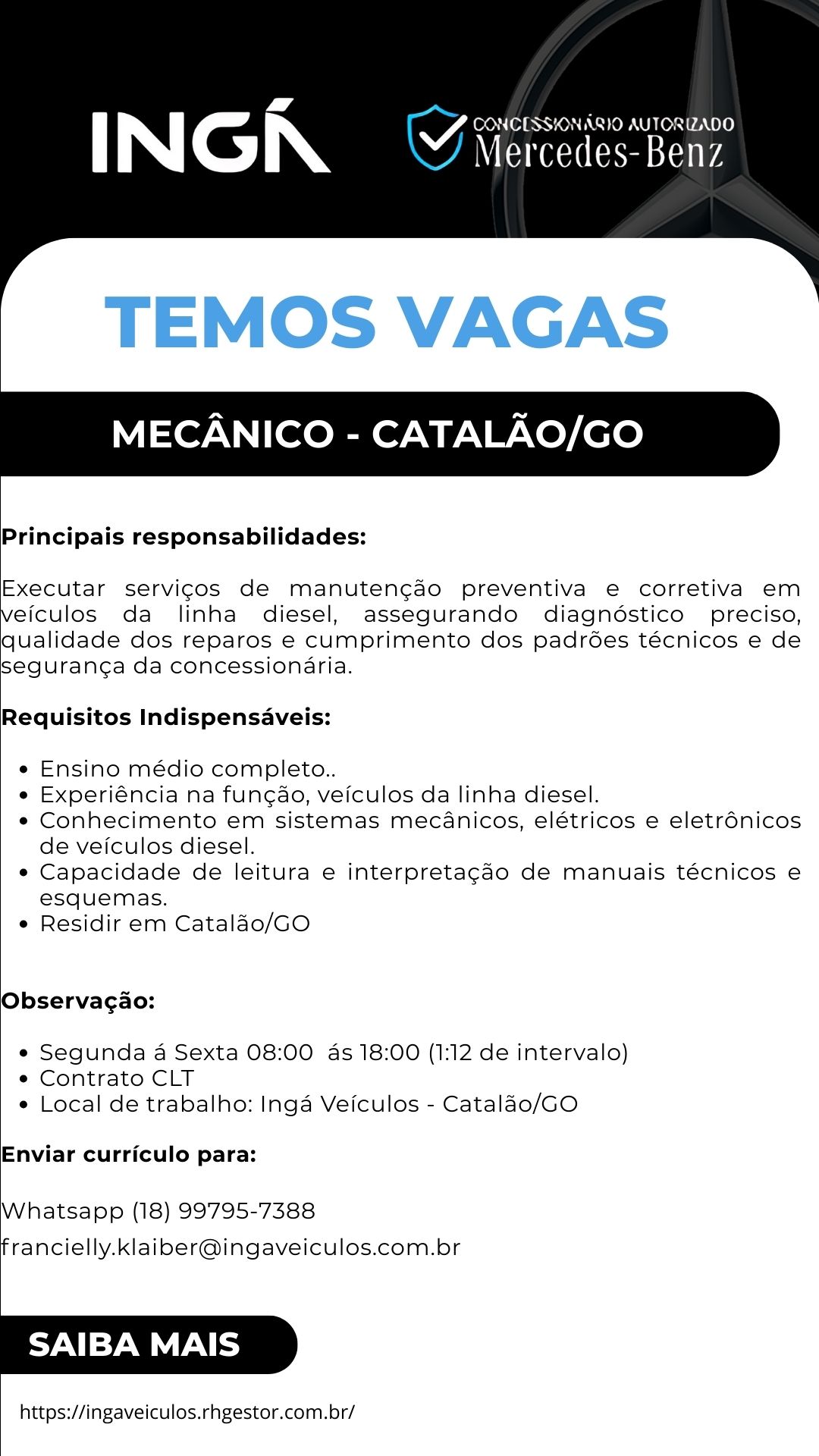 Mecânico - Concessionário Mercedes Benz - Catalão/GO